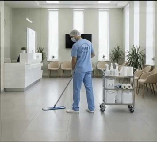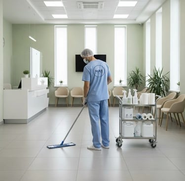 Diskrete und hygienische Reinigung von Arbeitsplätzen, Arztpraxen und Wartebereichen.